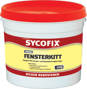 SYCOFIX Fensterkitt ist ein gebrauchsfertiger Dichtungskitt auf Leinölbasis. Er ist wasserfest, umweltfreundlich und geprüft